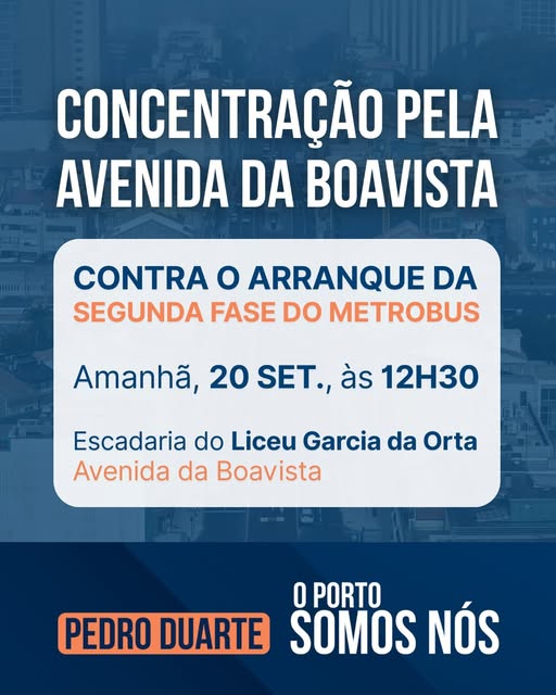 Porque as eleições estão à porta, e os portuenses devem ser, em primeiro lugar, ouvidos nas urnas, este sábado, pelas 12h30, vai haver uma manifestação com concentração na Escadaria do Liceu Garcia da Horta, Avenida da Boavista.